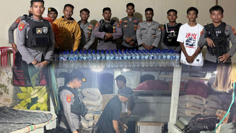 Taliabu, Detikharianpos.com – Upaya pemberantasan peredaran minuman keras kembali diperkuat Polres Pulau Taliabu melalui operasi malam yang digelar Sat Samapta di kawasan Pelabuhan Ngele Kecamatan Taliabu Barat Laut, Selasa (25/11/25). Dalam kegiatan itu, petugas berhasil menemukan dan menyita 190 botol cap tikus yang disembunyikan di atas KM Griselia.